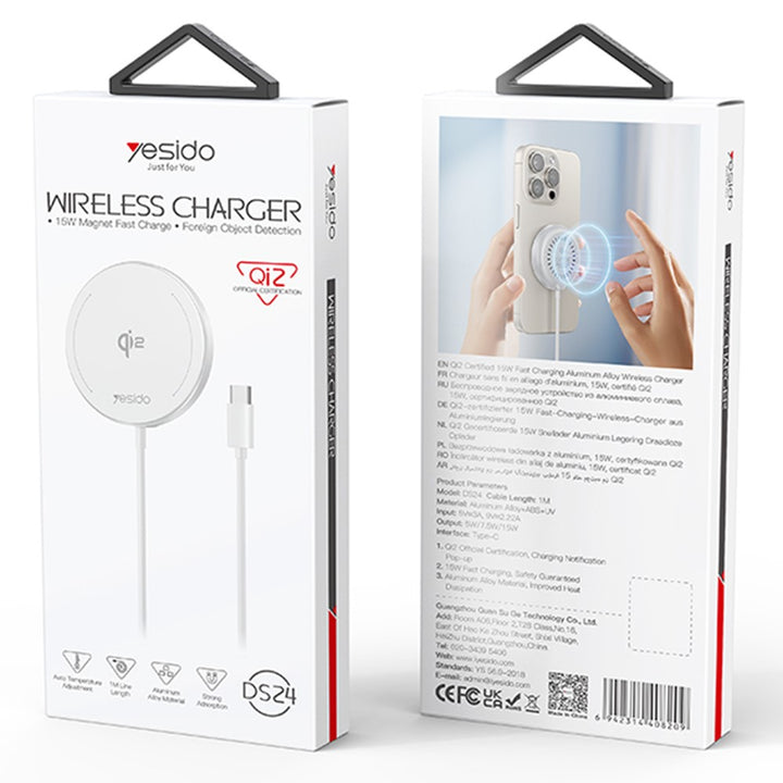 YESIDO DS24 QI2 Round Magnetic Wireless Charger Phone Type-C Cable Charging Pad