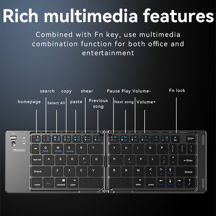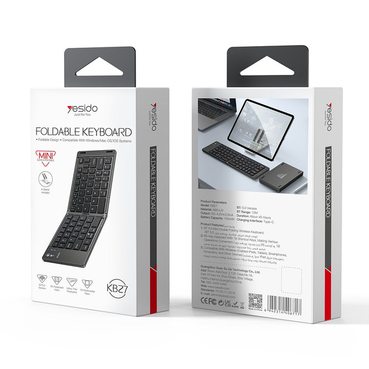 YESIDO KB27 Ultra Slim Mini Two-Fold Bluetooth-compatible Keyboard for Macos Windows Ios, English + Arabic