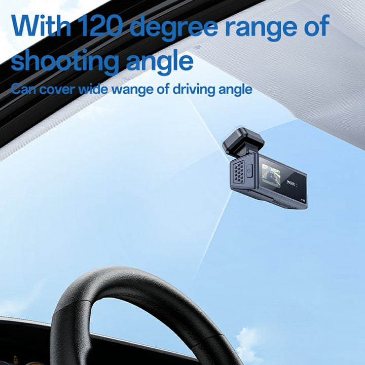 - 【120° Wide-Angle Lens】Experience an expansive field of view with the 120° wide-angle lens, minimizing blind spots and maximizing road visibility.