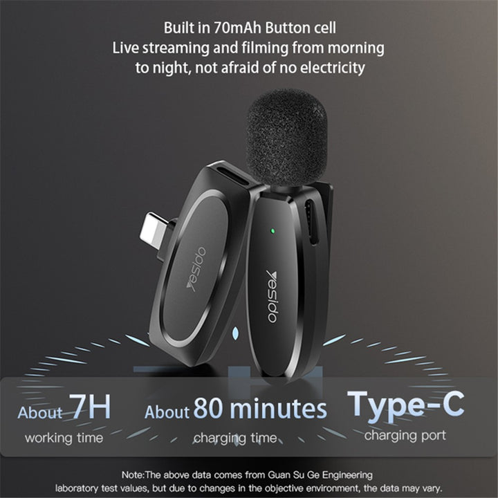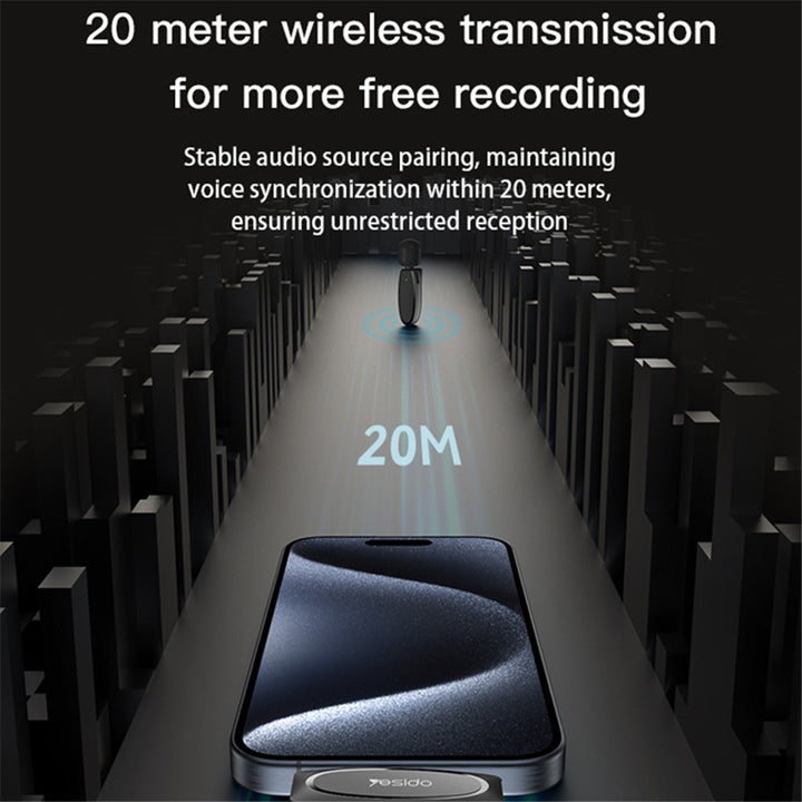 YESIDO KR15 Low Latency Wireless Lavalier Microphone iP / Type-C / 3.5mm Receiver + 2 Transmitter Mic Set