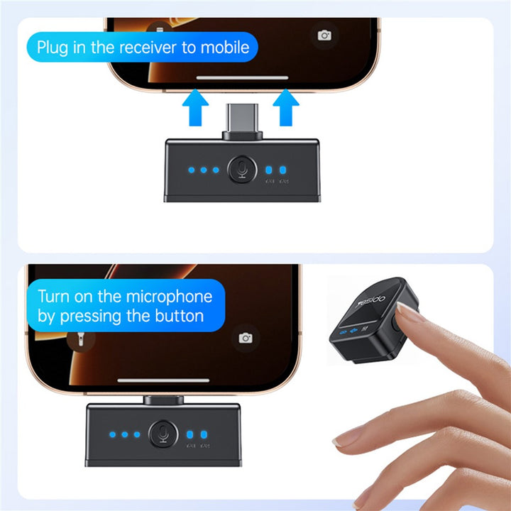 YESIDO KR19 2 in 1 Button Clip-On Microphone 100m Range Wireless Lavalier Mic Set