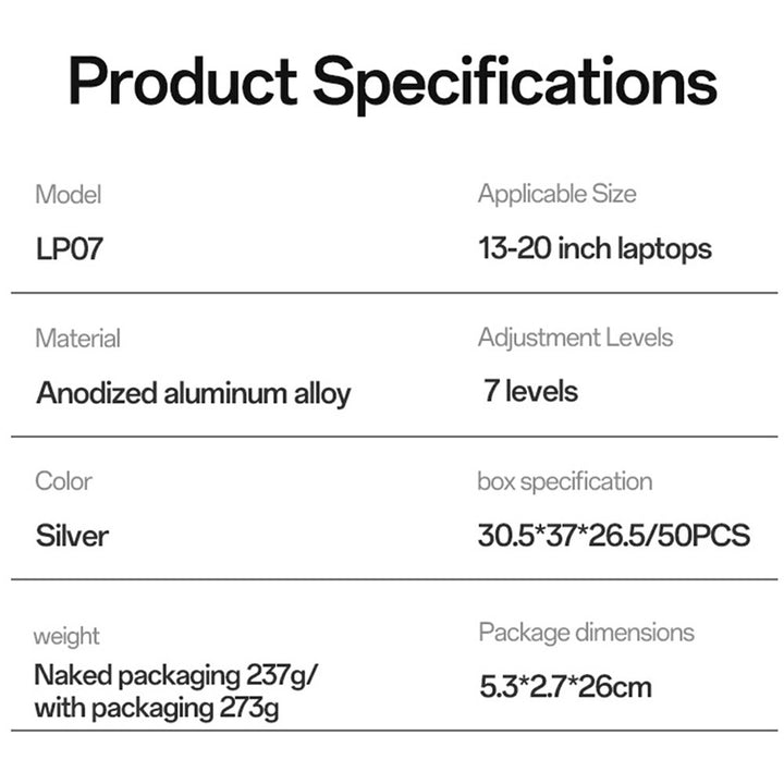- 【Seven Levels Height Adjustment】The laptop stand has 7 adjustable levels. It can meet the needs of users of different heights and sitting postures, allowing them to find a comfortable screen viewing angle.