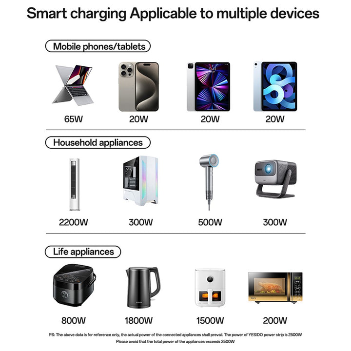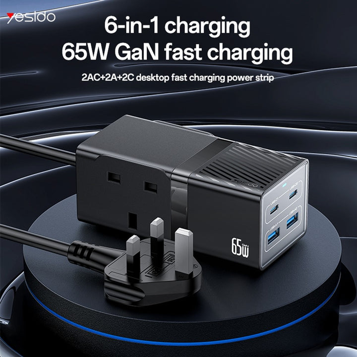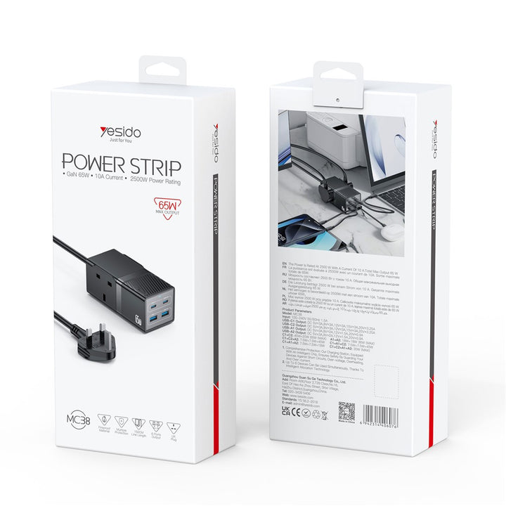 YESIDO MC38 65W GaN Power Strip USB-C USB-A Fast Charger Multi Device Charging Station