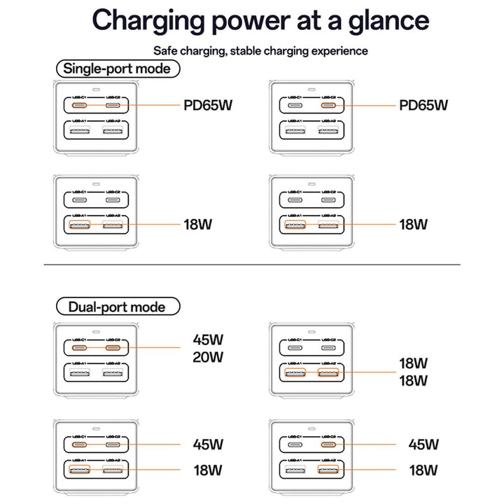 - 【High-Power Output】Delivers a maximum power output of 65W, ideal for rapid charging of power-hungry devices.
