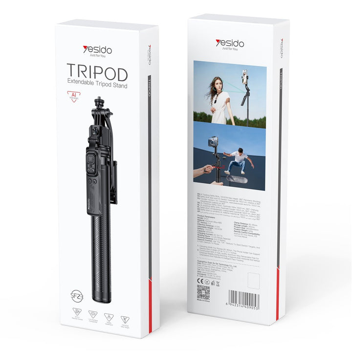 YESIDO SF23 AI Face Tracking Tripod for 360 Degree Panoramic Shooting Bluetooth-Compatible Selfie Stick