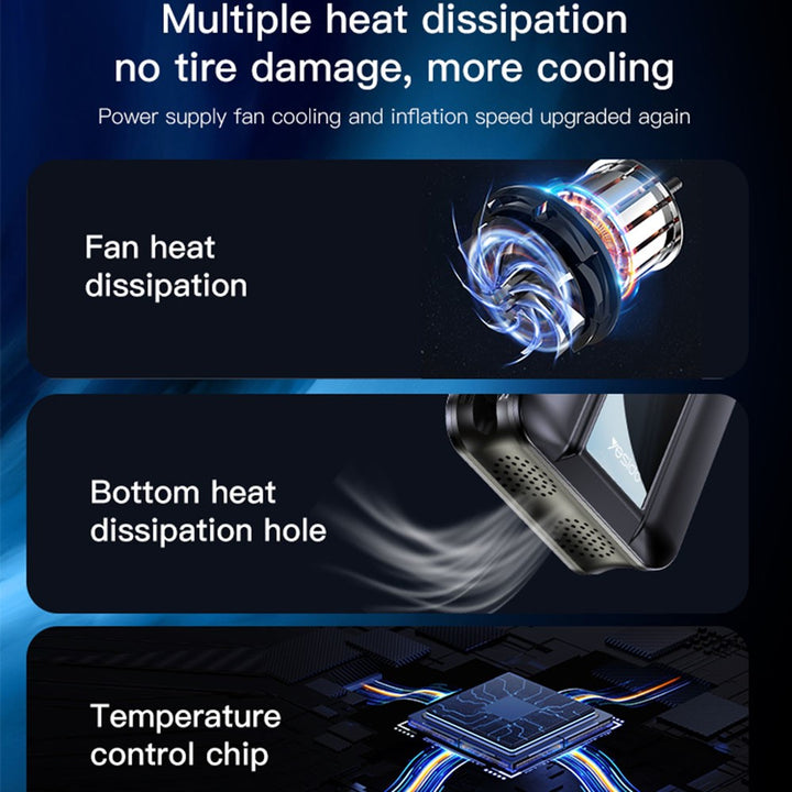- Multiple Heat Dissipation Systems: Built with enhanced cooling technology, ensuring no tire damage during prolonged inflation by efficiently dissipating heat