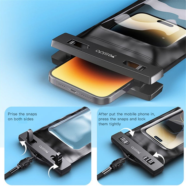 YESIDO WB10 PVC+ABS IPX8 Waterproof Phone Pouch for 6.8-inch Cell Phone Dry Bag with Strap for Outdoor Swimming