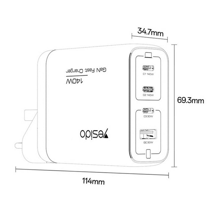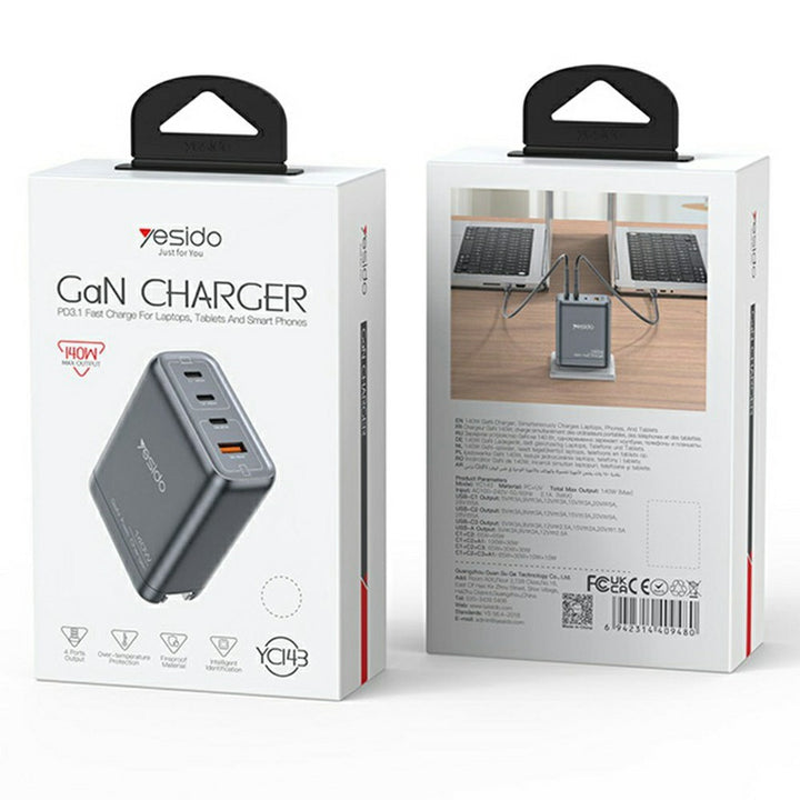 YESIDO YC143 140W USB-C Charger 4-Port USB-C + USB-A Fast Charging Wall Charger for Laptop / Phone / Tablet
