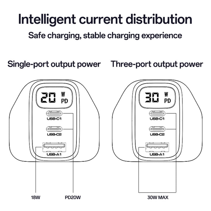 - PD 30W Max output power, charge 3 devices at the same time, fast charging in a trivial time