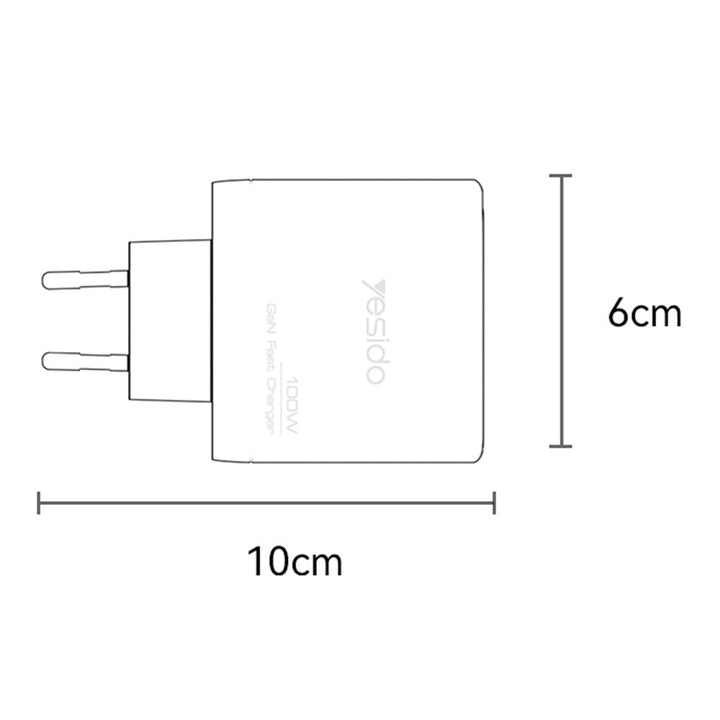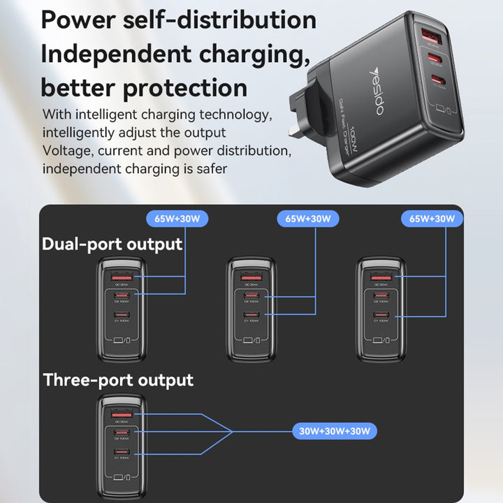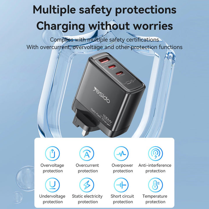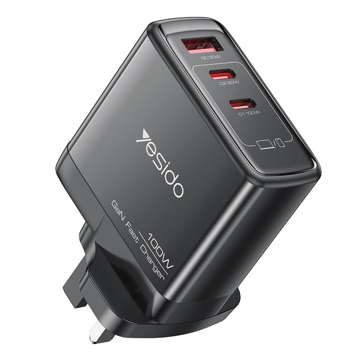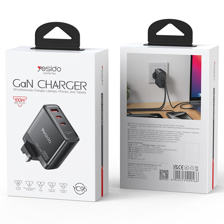 YESIDO YC95 PD 100W High Power GaN Charger USB A + 2 Type C Fast Charging Adapter, UK Plug