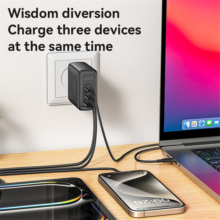 - 【Triple Port Versatility】Featuring 2 USB-C ports and 1 USB-A port, allowing flexible charging options for multiple devices simultaneously.
