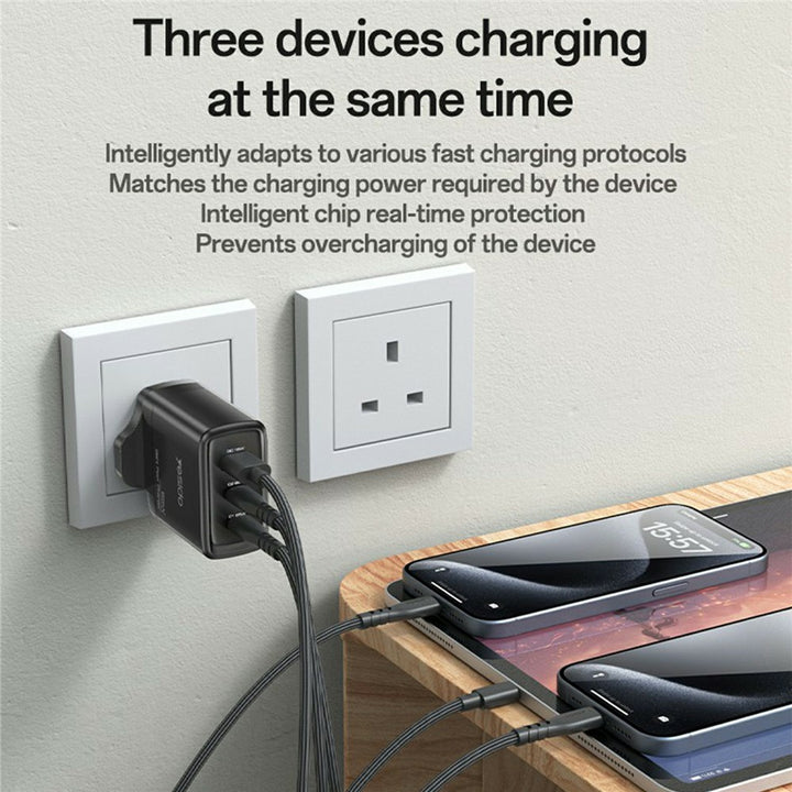 - 【65W Fast Charging】Equipped with 2 USB-C and 1 USB-A ports, delivering a total 65W output. Supports flexible charging for multiple devices simultaneously.
