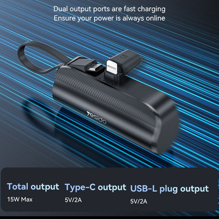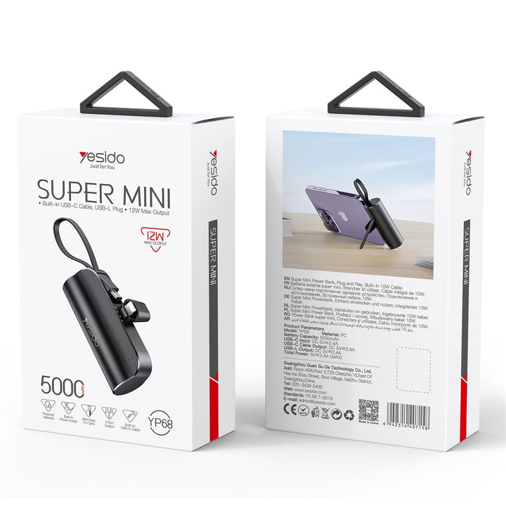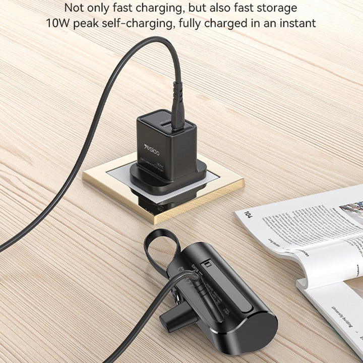 YESIDO YP68 5000mAh 5000mAh iP Plug Mini Power Bank with Built-In Type-C Cable and Hidden Bracket