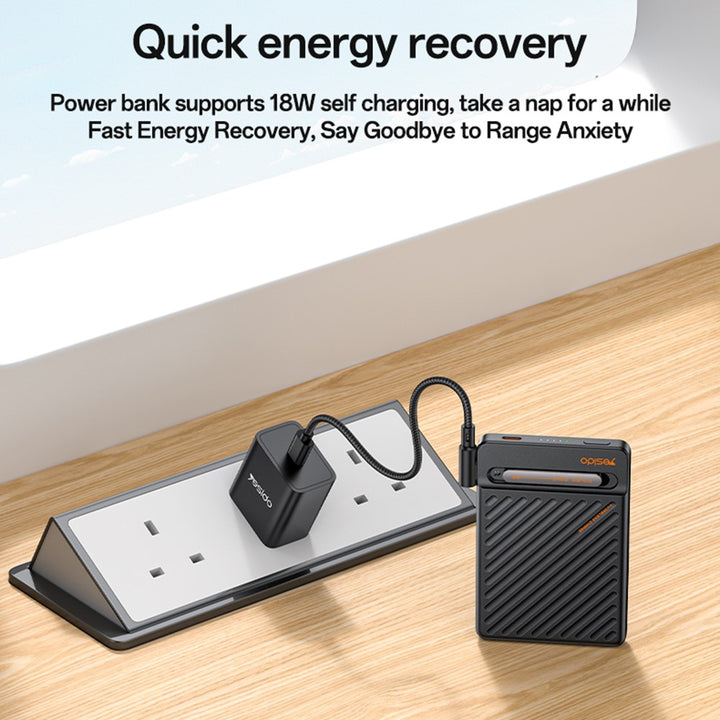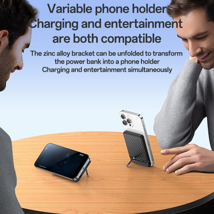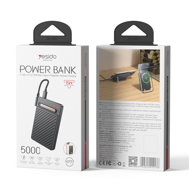 YESIDO YP77 Magnetic Wireless Charging 5000mAh Phone Power Bank with Built-in Cable + Kickstand