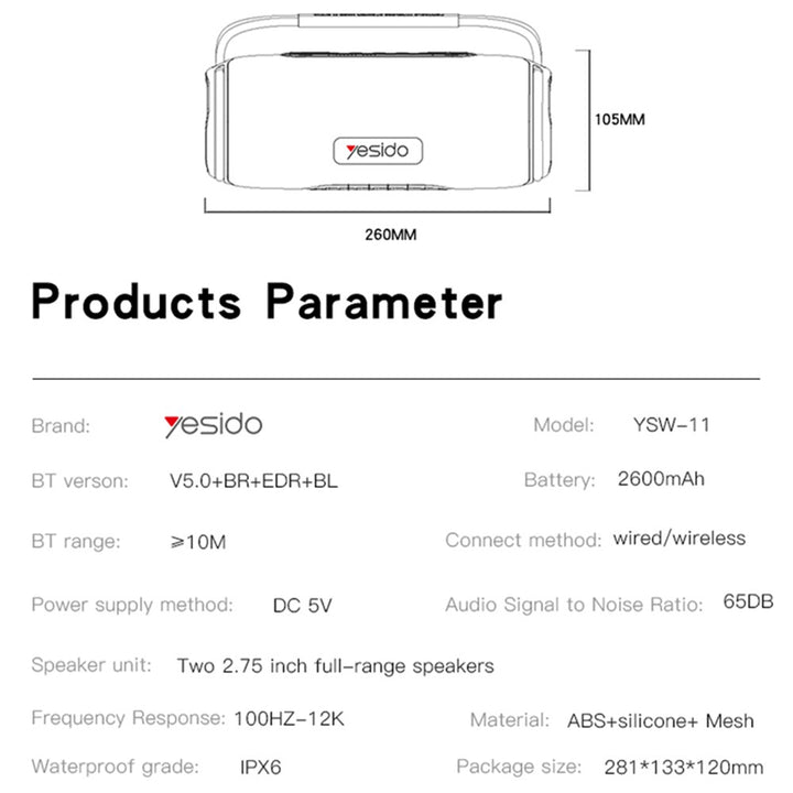YESIDO YSW-11 Wireless Bluetooth-compatible Speaker for Home, Outdoor Portable Subwoofer Speaker
