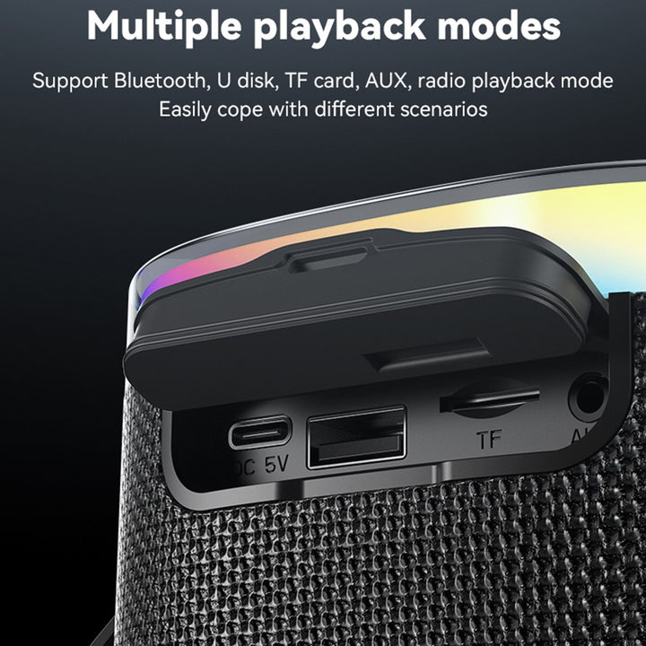 - Seven-Color Ambient Lighting: Features a vibrant, seven-color circular LED light ring that enhances the listening experience, creating a dynamic atmosphere wherever you take it