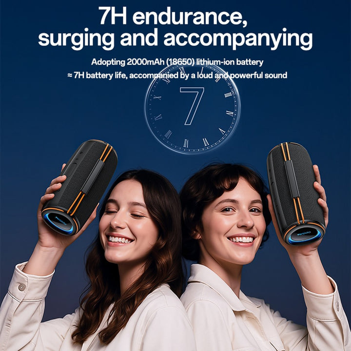 - 【Long-Lasting Battery】With up to 7 hours of playtime at 80% volume, this speaker keeps the party going both indoors and outdoors.