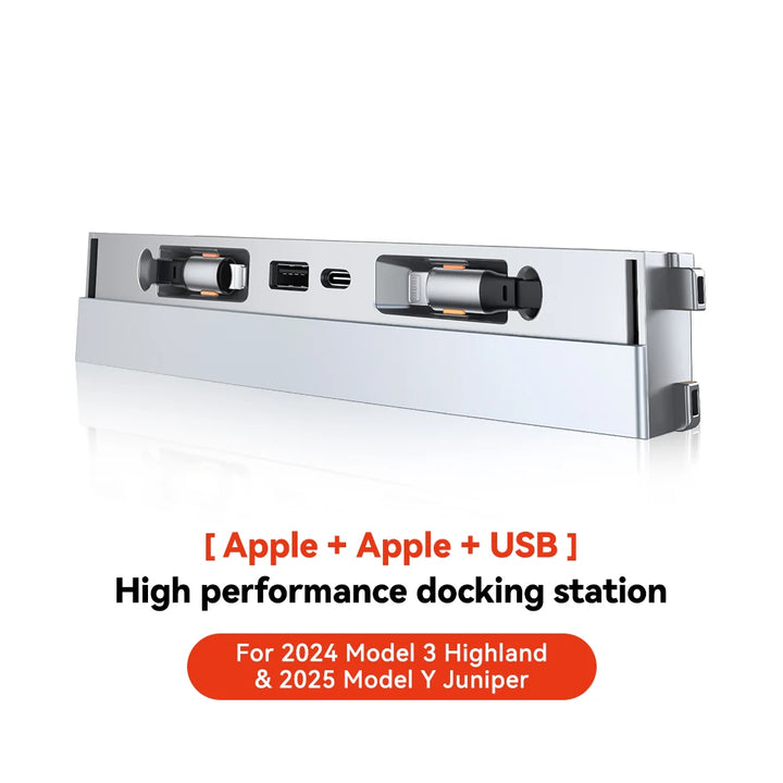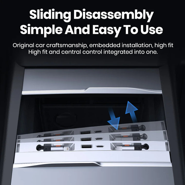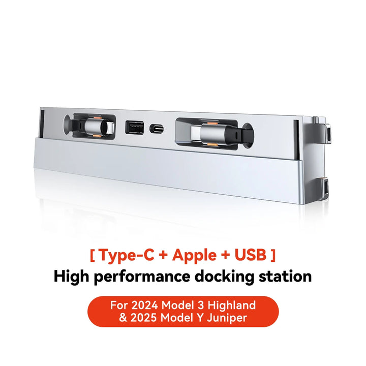 Upgrade your Tesla with a sleek 54W center-console USB hub designed for Model 3 Highland and Model Y Juniper (2025). The compact, OEM-style dock adds fast charging and tidy cable management without sacrificing storage. Built with high-temperature-resistant materials (rated up to 105 °C) and smart docking to keep devices secure on bumpy roads. Supports multiple device types (USB-C and Lightning options), so everyone rides powered and clutter-free. Retailers and buyers searching “Tesla Model 3 Highland USB hub” or “Model Y Juniper USB hub” will find this a perfect fit.
