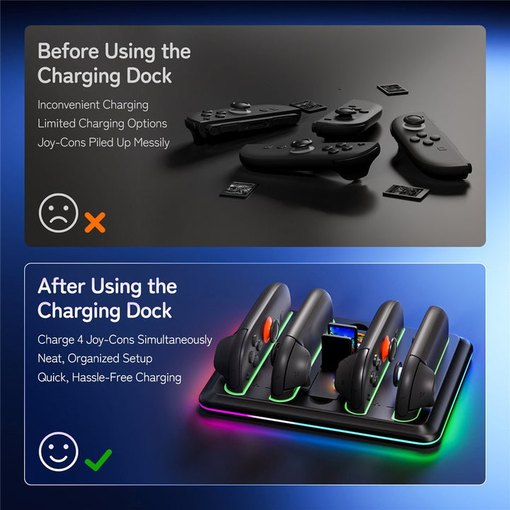 - 【Versatile Charging Station】 Simultaneously charge up to 4 controllers, offering efficient power management for extended gaming sessions