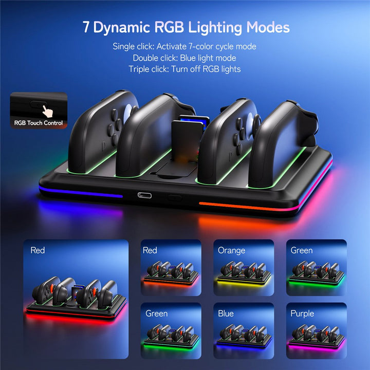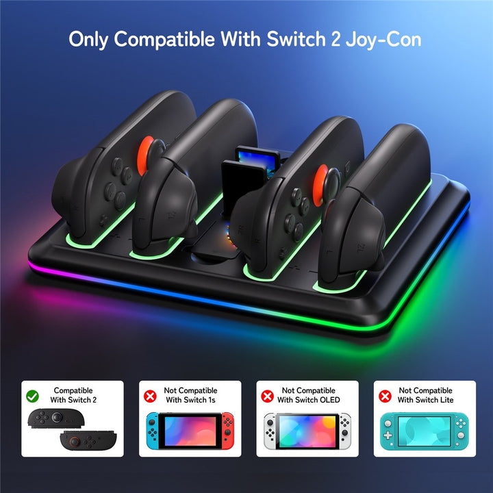 Z31 For Nintendo Switch 2 Controller Charging Dock RGB Light Joy-Con Charger Stand with Game Card Slots